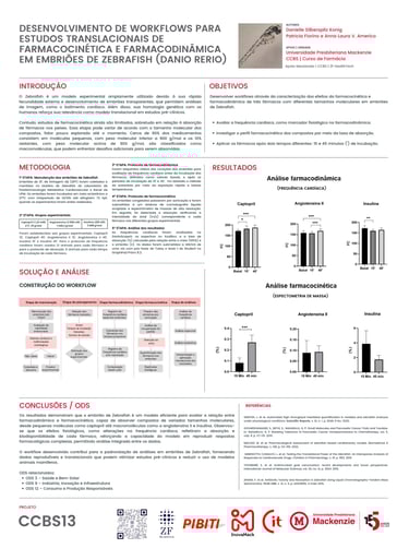 DESENVOLVIMENTO DE Workflows para estudos translacionais de farmacocinética e farmacodinâmica de novos biofármacos em embriões de Zebrafish (Danio rerio).